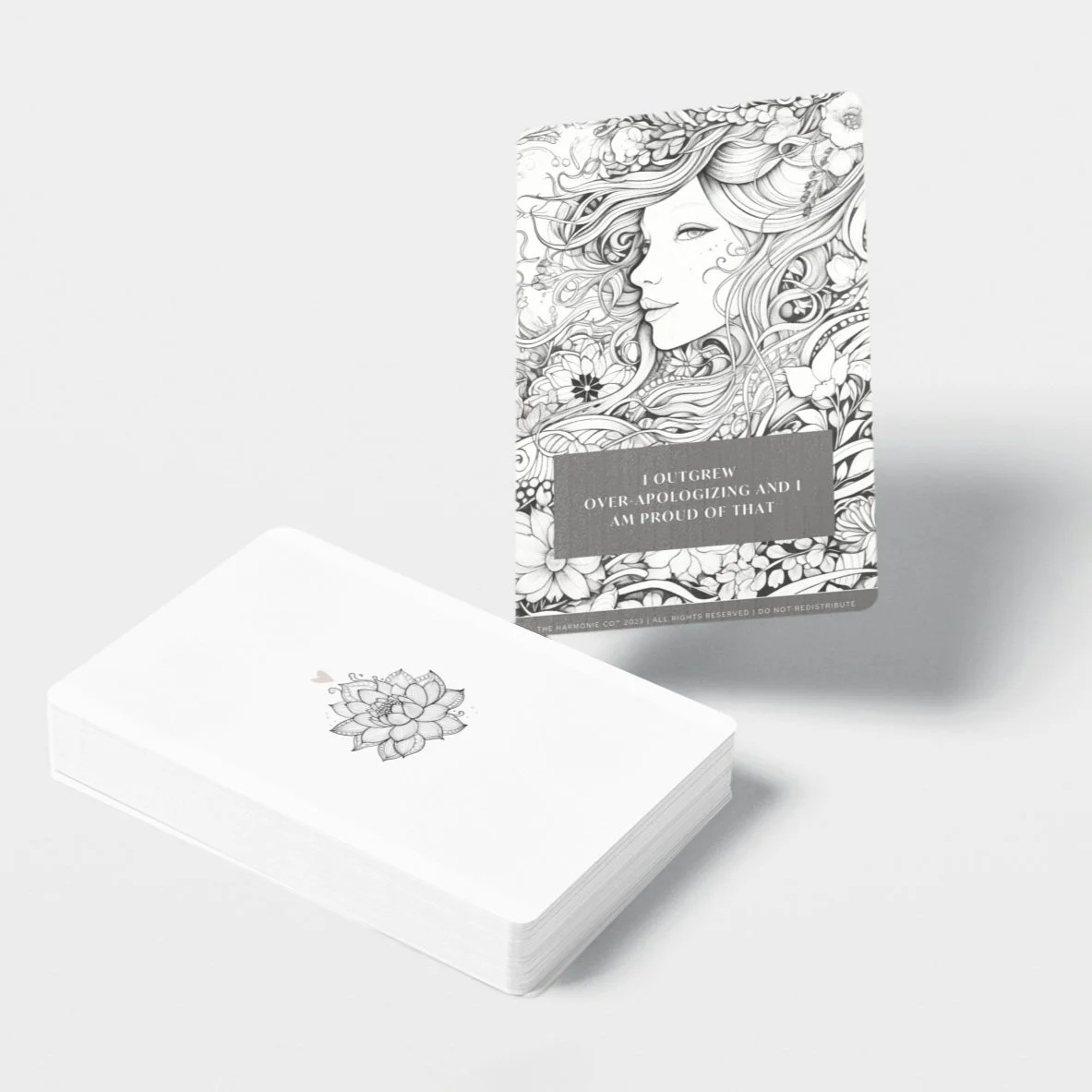 This soulful deck was brought to life by Harmonie founder and Integrative Health and Brand coach, Meghan La Roque. Inspired by the essence of the divine feminine, it echoes the call for self-compassion and love that resides within us all. Drawn from personal experience, the creation of this deck holds a special place in Meghan’s journey. It serves as a reminder of the importance of setting boundaries, as she endured a stress related burnout in 2017. It is a poetic ode to the gentle whispers of our innate inner nurture and the remarkable strength it invokes when we prioritize self-care. May this deck be a guiding melody that resonates with the profound wisdom within your heart, encouraging you to embrace the transformative power of self-love.